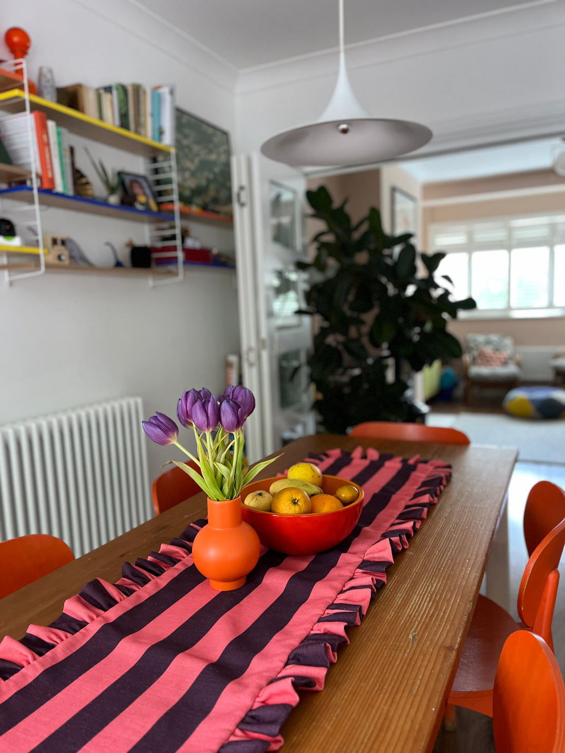 MUSTARD AND RUST STRIPE RUFFLE TABLE RUNNER