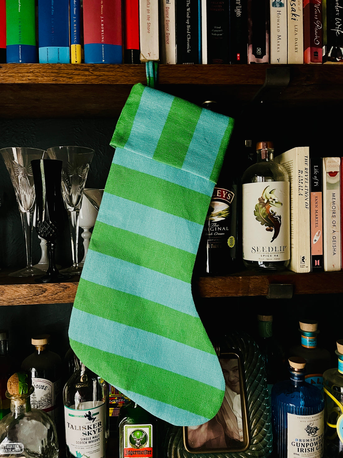 Pink & Olive Stripe & Rust Velvet Ruffled Christmas Stocking