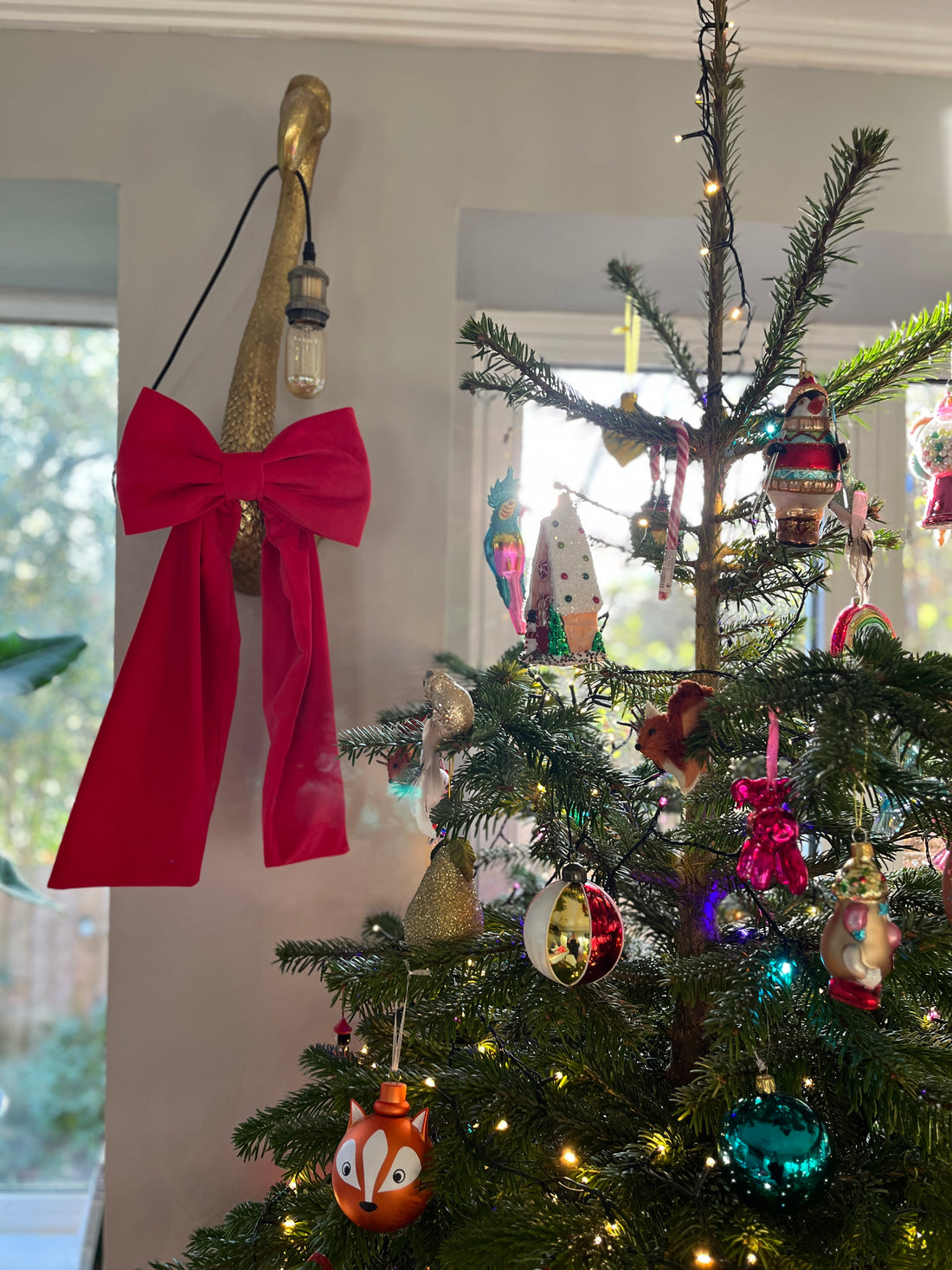 Pink & Olive Argyle Christmas Stocking with Luxury Fur Cuff