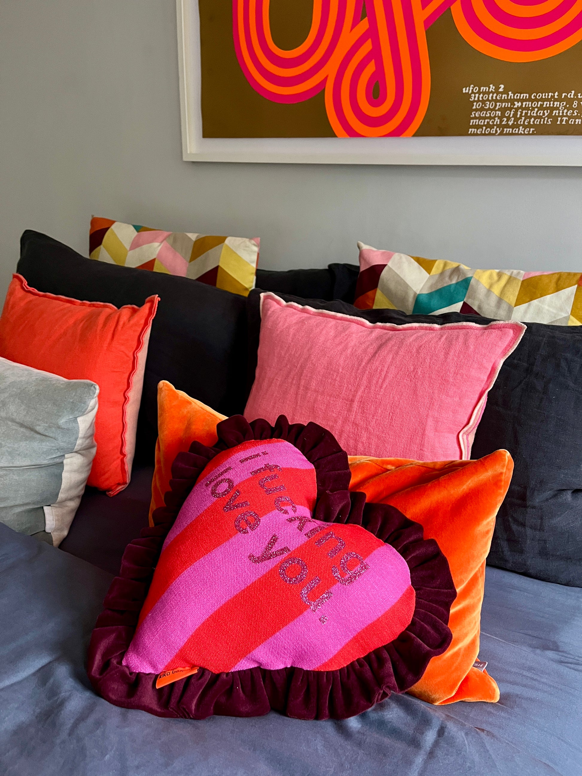 I FUCKING LOVE YOU HEART RUFFLE CUSHION
