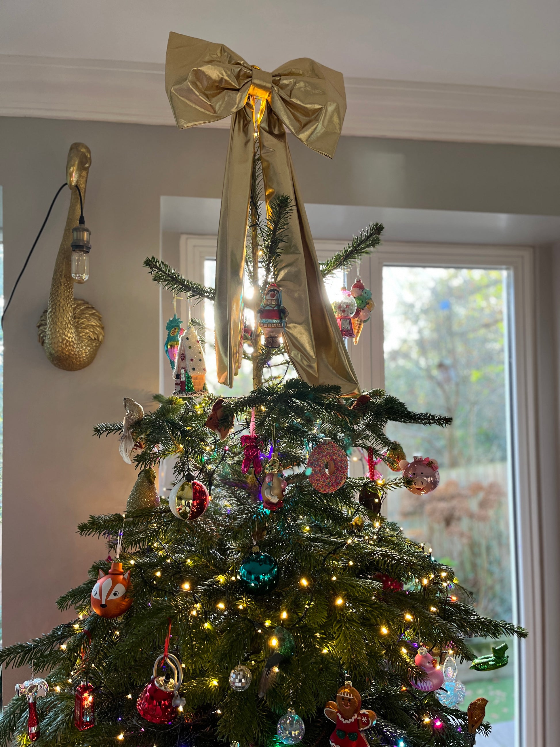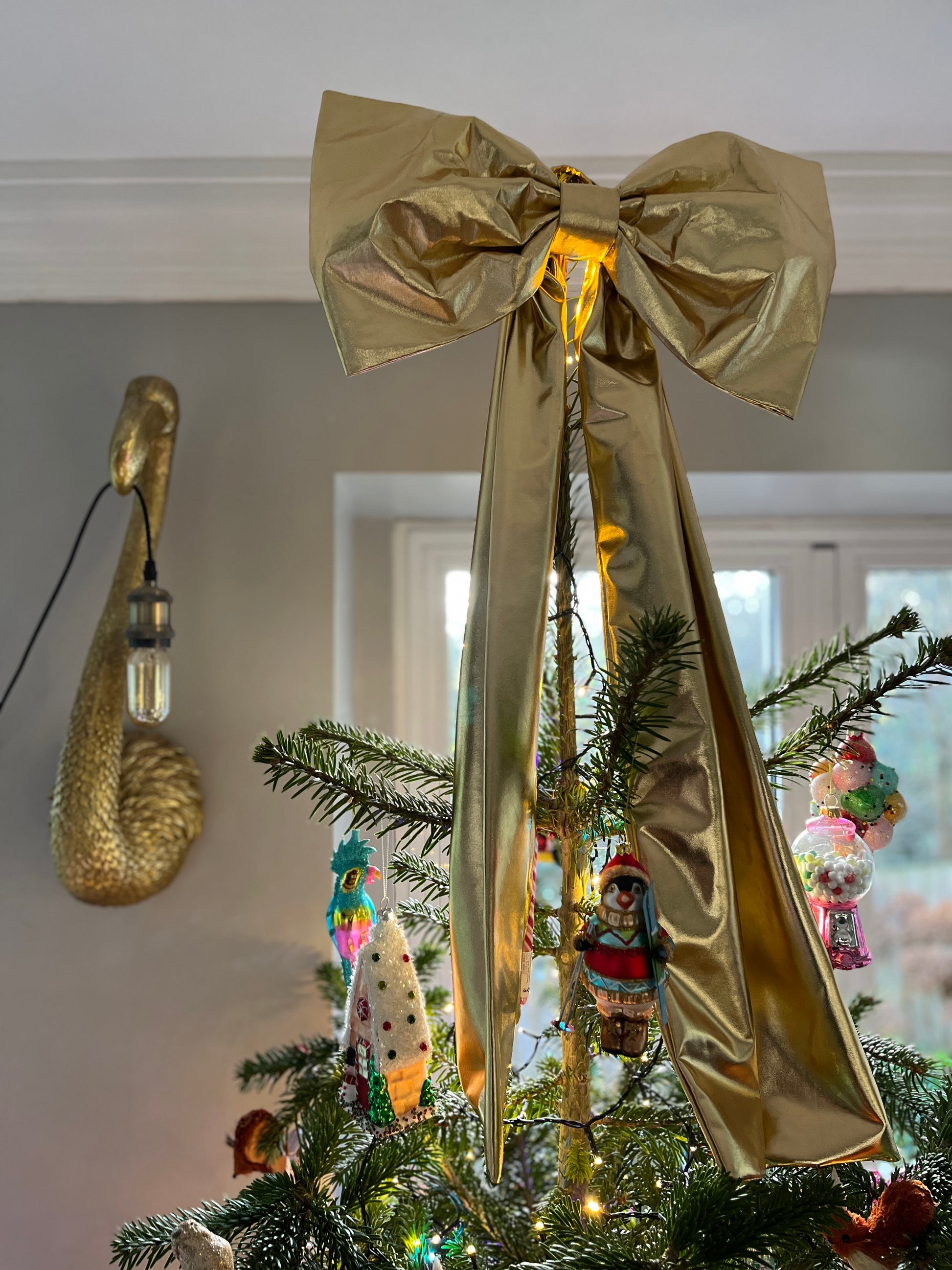 - It comes with a velcro fastening at the back, ready to attach to your bannister, mirror, mantel or at the top of your tree!