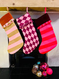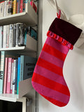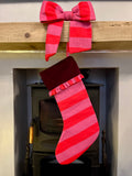 Red & Pink Stripe & Burgundy Velvet Ruffled Christmas Stocking